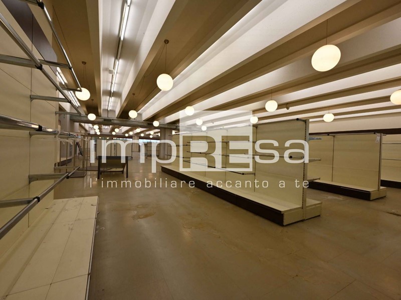 La zona commerciale, di complessivi 2.528 mq., si sviluppa per 1.150 mq. al piano terra e per 1.378 al piano primo. I due piano sono collegati dalle scale mobili, poste al centro dell'edificio. Al piano terra trovano collocazione un magazzino di circa 270 mq. ed una zona servizi di oltre 120 mq.