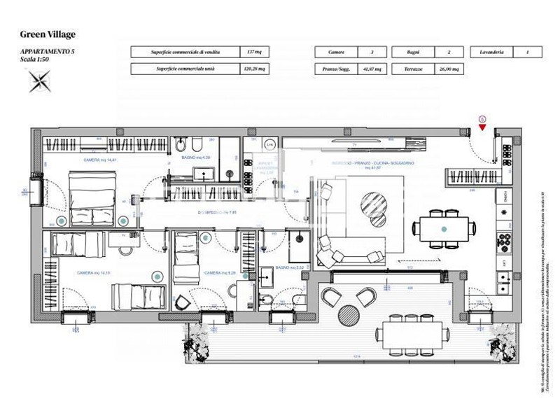 L'immobile, inserito in un polmone verde alle porte della citta', risulta cosi' distribuito: zona giorno/pranzo con angolo cottura di oltre 40 mq ottimamente distribuiti, disimpegno, tre camere letto di cui la principale con bagno personale, secondo bagno ed ulteriore lavanderia/ripostiglio. Splendida terrazza fruibile dalla zona giorno arricchita da spendido serramento scorrevole e da una camera. Completano la proposta il garage, il magazzino ed il posto auto assegnato in proprieta'.