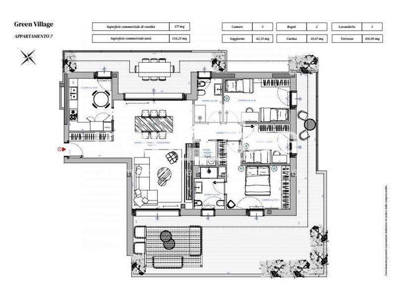 L'immobile, inserito in un polmone verde alle porte della citta' è cosi' distribuito: zona giorno/pranzo di oltre 40 mq, cucina separata di altri 10 mq, comodo disimpegno, tre camere letto di cui la principale con bagno personale e piccola cabina armadio, secondo bagno finestrato ed ulteriore lavanderia/ripostiglio. Il meraviglioso attico è arricchito da due splendide terrazze fruibili da ogni locale, della zona giorno come da quella notte, garantendo quindi un'invidiabile esposizione. Completano la proposta il garage doppio ed il posto auto assegnato all'interno della proprieta'.