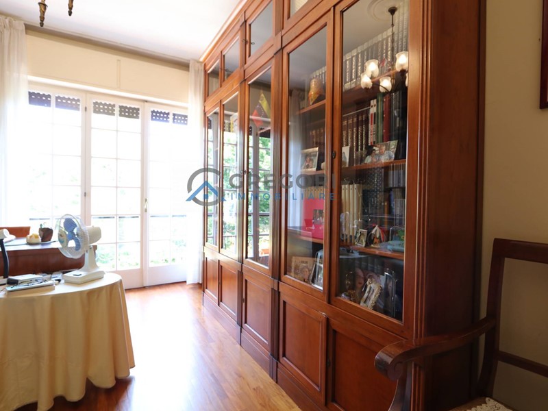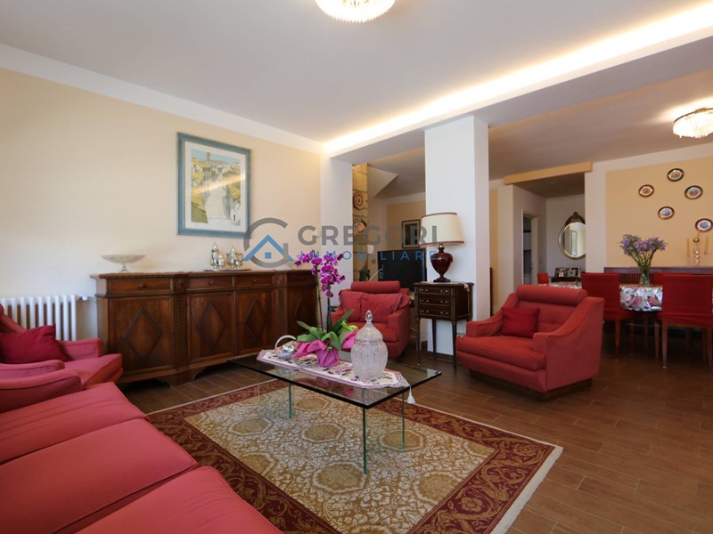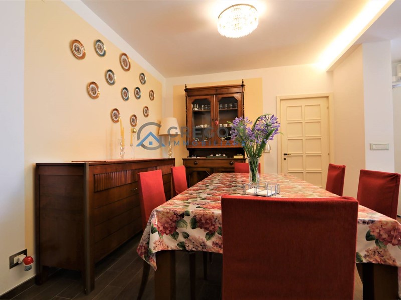 L'immobile è composto da ingresso su area giorno con un luminoso salotto, cucina abitabile con camino servita da terrazzo ed un bagno, nella zona notte troviamo cinque ampie camere matrimoniali di cui tre con bagno, servite da balconi e una stanza riservata a cabina armadio.