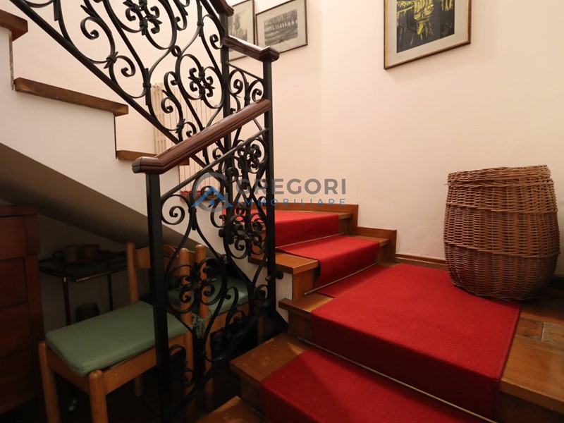 Attraverso la scala interna si accede su un'ampia area relax con camino, una spaziosa cucina abitabile con dispensa, un bagno con doccia ed un locale lavanderia.