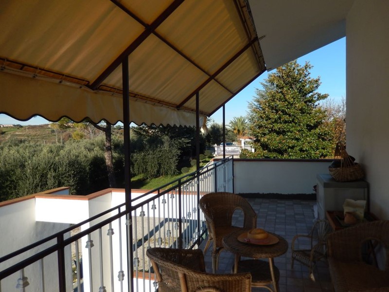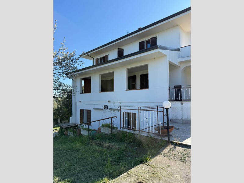 -piano primo sotto-strada, troviamo un locale adibito a studio, un garage di mq 70, ed un terzo appartamento con ingresso sul retro della casa composto da ingresso su soggiorno con cucina a vista, tre camere e tre bagni, di cui uno nella camera matrimoniale. La proprietà è completamente recintata sul giardino perfettamente curato troviamo un annesso in cemento armato condonato con forno a legna, possibilità di realizzare una bella e grande piscina. La villa dispone inoltre di un grande appezzamento di terreno 2,5 ha che circondano la proprietà. La villa si presta molto bene per la realizzazione di una struttura turistico ricettiva o B&B, ottima posizione, tranquilla lontana da rumori e strade e strade principali, ma allo stesso tempo non isolata, infatti nelle vicinanze troviamo anche altre ville ed abitazioni importanti; vista bellissima a 360 ° su colline mare e montagna.