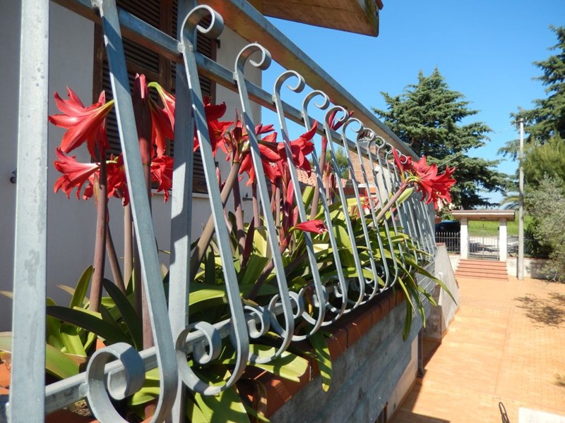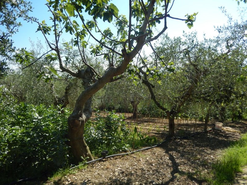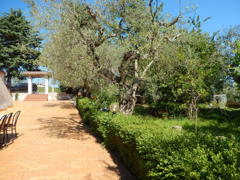 Il terreno di proprietà di 10000 mq è comodo, pianeggiante e ben distribuito, composto da alberi da frutto, piante ornamentali e 130 piante di ulivo di ottima produzione; oltre due annessi per rimessa attrezzi da lavoro e giardinaggio; oltre l'annesso abbiamo una struttura in cemento, realizzata per rimessa auto, dove vi è stato inserito un forno a legna.