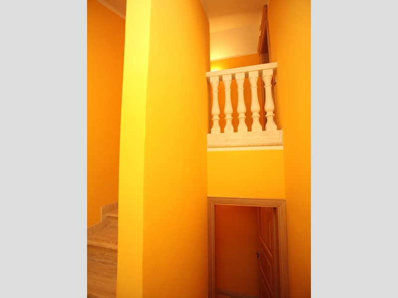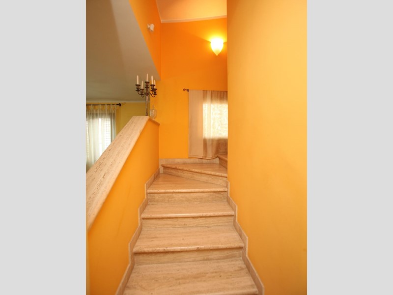 Le scale, interne ed esterne e le soglie delle finestre sono in travertino romano stuccato e decapato.