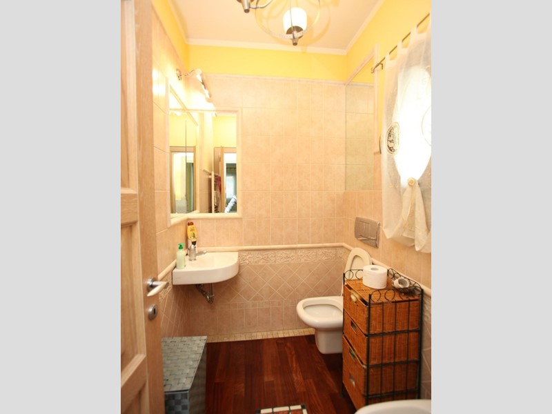 Il bagno in questione, nonostante che sia di servizio, è molto ben rifinito. Il riscaldamento è a pavimento e la predisposizione per laria condizionata.