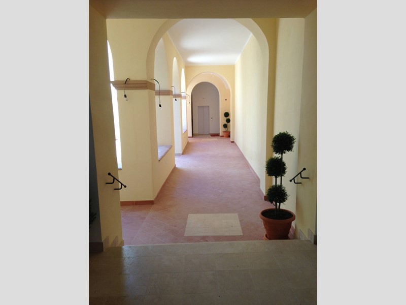 L'appartamento ha un ampio soggiorno con angolo cottura, locale molto particolare, con pareti ad arco in mattoni faccia vista; tre camere matrimoniali, due bagni, ripostiglio, lavanderia ed ampio terrazzo panoramico. L'ingresso dalla via principale, all'interno del palazzo storico ristrutturato, dove troviamo anche una corte pavimentata. Grande garage di circa 35 mq al piano seminterrato. Una soluzione adatta come investimento per uso vacanze!