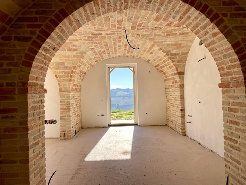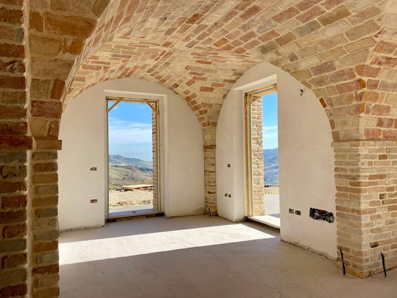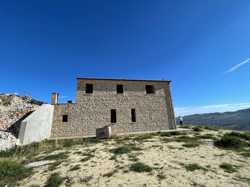 Ripatransone (AP) - In dominante posizione panoramica con vista mare e monti, vendesi tipico casale colonico, completamente nuovo costruito secondo tutte le ultime normative antisismiche e risparmio energetico, disposto su due livelli per complessivi 200 mq con 6 ha di terreno circostante: