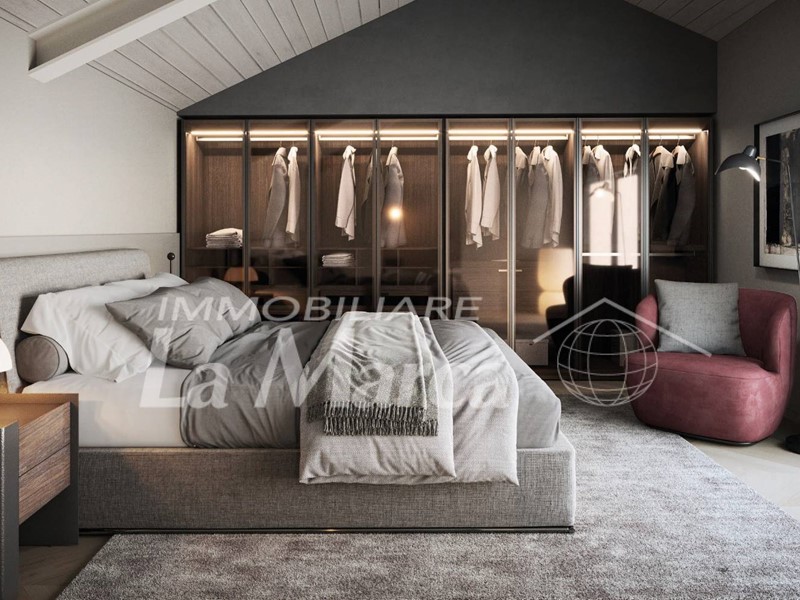 Il piano terra ospita un generoso garage per 3 auto. Salendo al piano primo si sviluppa la zona notte con 2 camere padronali con guardaroba e bagno, ampio disimpegno con bagno, camera matrimoniale e ulteriore camera matrimoniale con cabina armadio, oltre a studio/camera.