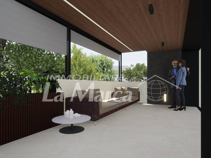 L'appartamento al piano primo si contraddistingue per l'imponente zona giorno con affaccio sulla duplice terrazza e loggia di complessivi 42mq, bagno e ripostiglio;