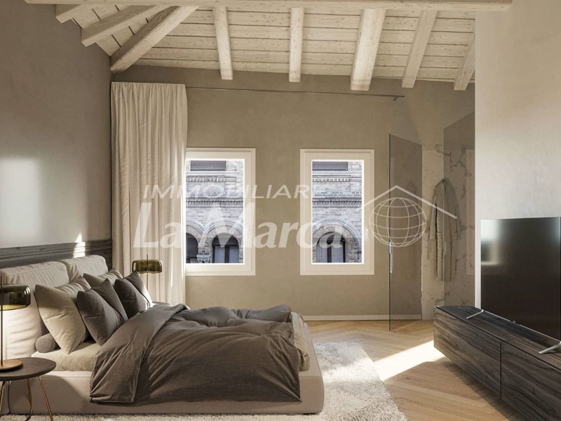 Nel cuore del centro storico, importante attico inserito in palazzo di pregio novecentesco, frutto di un accurato intervento conservativo.