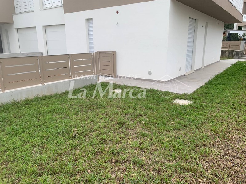 zona living con cucina separata, bagno con antibagno, garage e due posti auto scoperti, giardino da 150 mq;