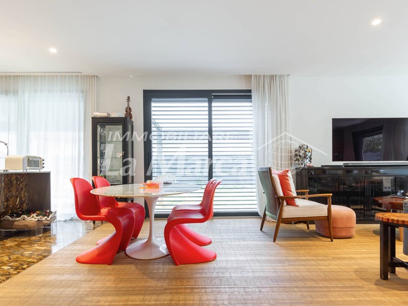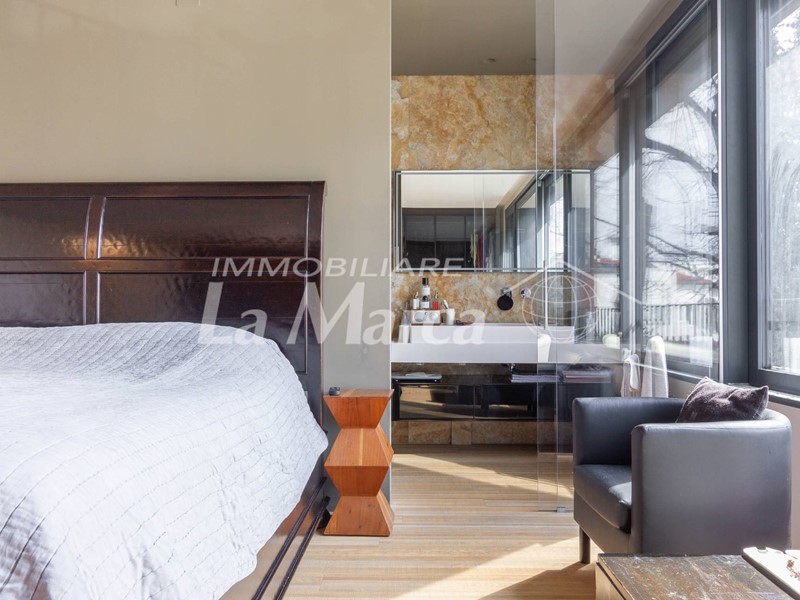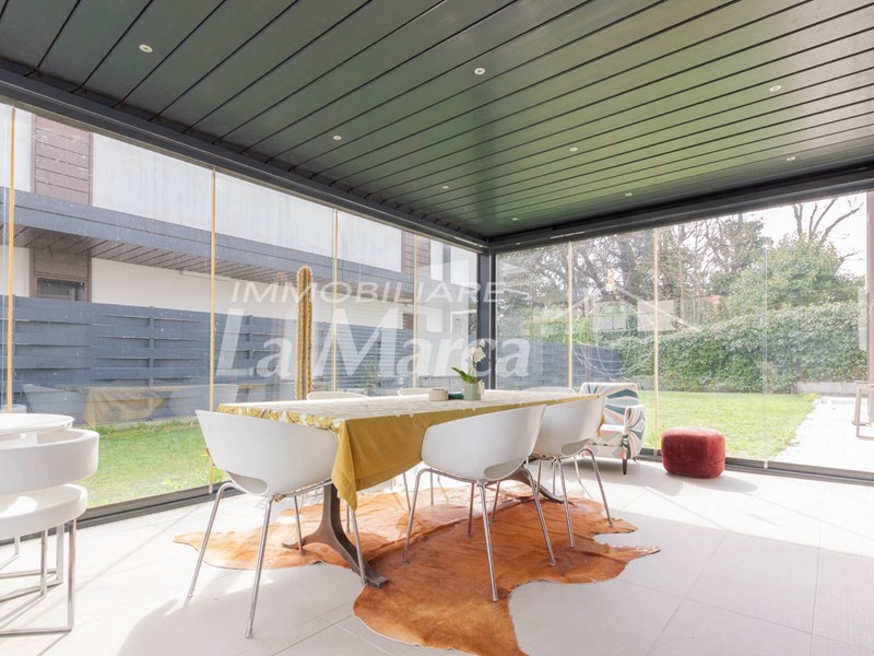 Questa abitazione d'eccellenza si caratterizza per la sua estetica dalle linee esterne molto pulite,minimaliste,con grandi vetrate che affacciano direttamente sul giardino e finiture estremamente ricercate.