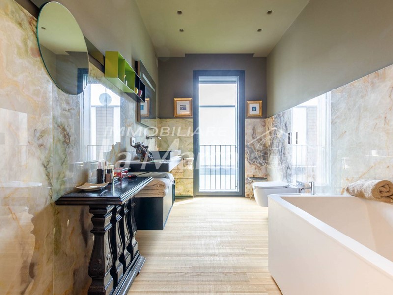Come rivestimenti interni pavimento in rovere colore naturale,rivestimento scala e pavimentazione cucina in marmo onice,rivestimento bagni in marmo calacatta.