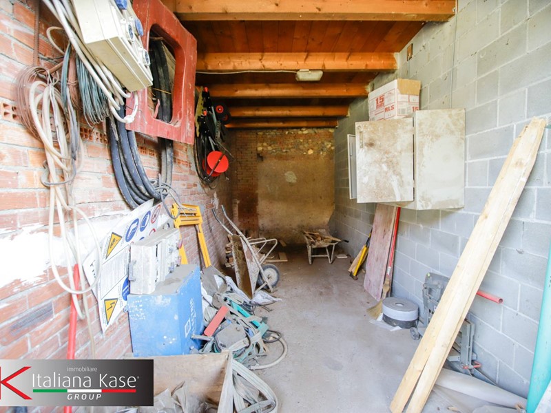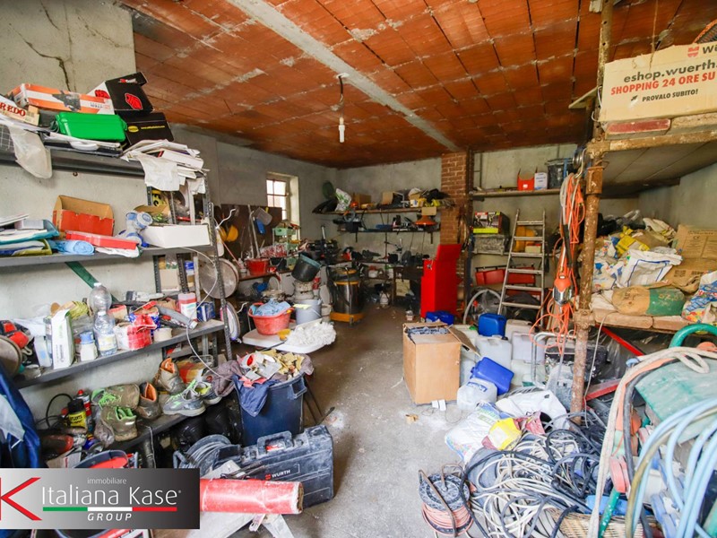 Davanti alla casa, si trova la tettoia con magazzino al piano terra e fienile al piano primo, box auto e cantina. Cortile privato di c.a 250 mq e area verde.