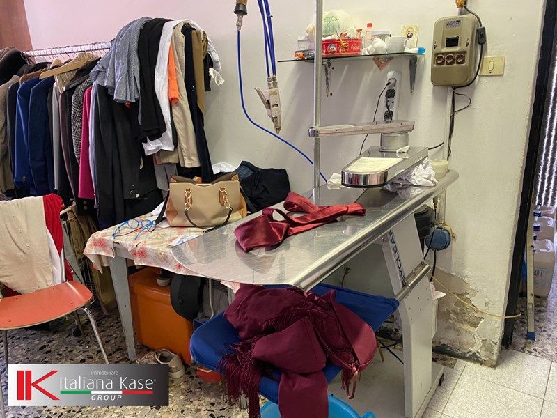 Il locale, in affitto, ha una superficie totale di 80 c.a metri quadrati, disposti in tre ambienti: uno per l'accoglienza dei clienti, un laboratorio, dove lavare ad acqua, smacchiare e stirare, un magazzino/guardaroba per il cambio stagione (dei clienti), oltre al bagno. Compresi nella vendita tutti i macchinari e strumenti contenuti all'interno dei locali.