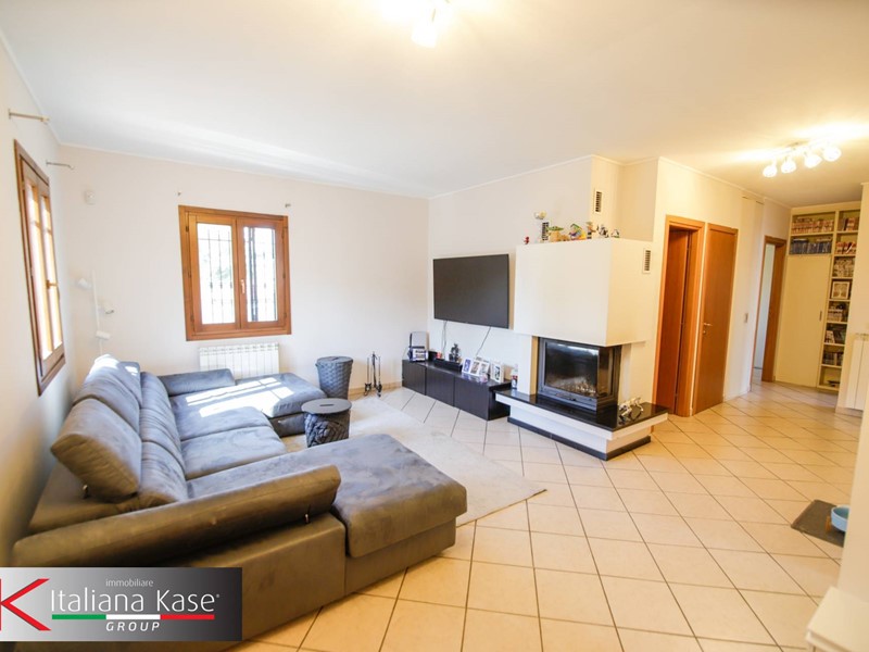 L'ingresso tramite il porticato è sul soggiorno, che può godere anche di un ampio terrazzo coperto.