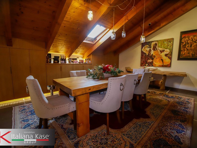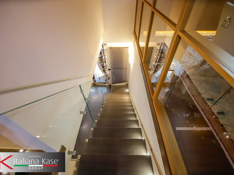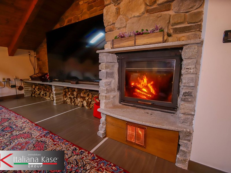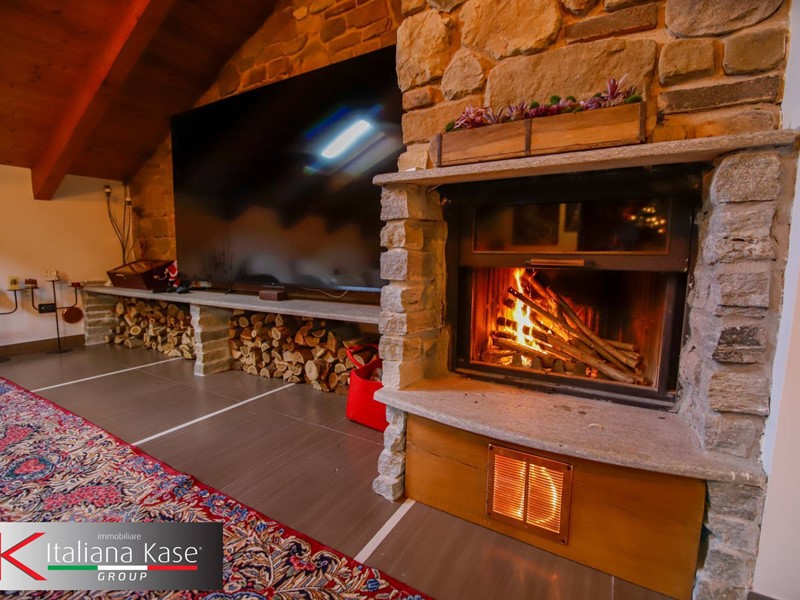 Tramite scala interna si accede al piano di sopra dove troviamo un ampio soggiorno con camino suddiviso in due aree.