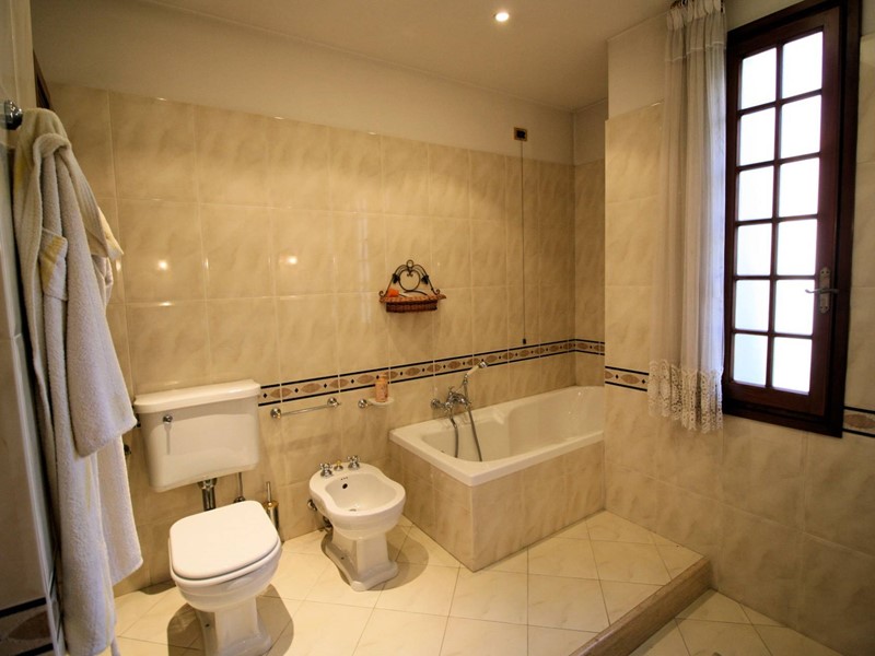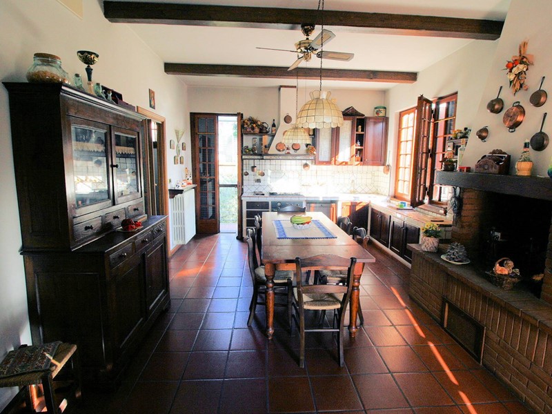 Attraverso una scala interna si raggiunge la porzione della villa padronale disposta su due livelli, al piano primo troviamo unampia zona living di circa 70 mq molto luminosa disposta su piani sfalzati da due scalini dove sono stati ideati il soggiorno e la sala da pranzo con accesso diretto ad un bel terrazzo, cucina di dimensioni generose con caminetto e dispensa con accesso diretto a due terrazzi, salendo quattro scalini si raggiunge la zona notte composta da camera padronale con bagno privato ad uso esclusivo e accesso diretto ad un terrazzo, camera matrimoniale, camera doppia, bagno;