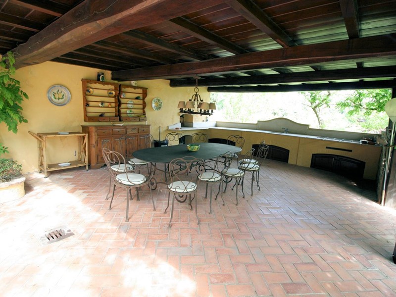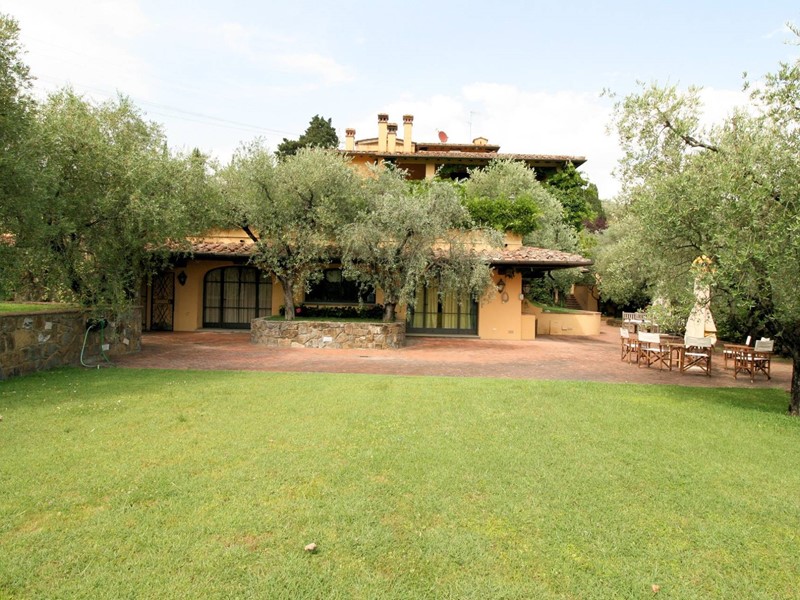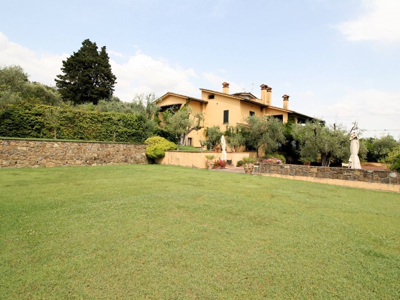 Si tratta di una proprietà bellissima in stile rustico Toscano molto raffinato immersa nel verde della campagna a circa 15 minuti da Firenze.Nel bel mezzo di uno straordinario e ben mantenuto giardino con un curatissimo prato allinglese sorge maestosa la villa padronale di circa 700 mq, disposta su tre livelli dove sono presenti, sia allesterno che allinterno, molteplici locali adibiti a zona relax, svago, palestra, sauna, zona living e zona pranzo con una cucina dotata di un attrezzatura come fosse al servizio di unattività ristorativa.La villa è circondata da terrazzamenti con muri di sostegno in pietra dove trovano spazio circa 450 ulivi in produzione e un vigneto di circa 2 ettari dal quale si ricavano circa 5.000 bottiglie/anno di vino Super Tuscan molto apprezzato dal mercato Californiano per lottima qualità.A poca distanza dal fabbricato principale, ci sono tre piccole unità immobiliari di circa 60 mq ciascuna, disposte in due corpi indipendenti che vengono utilizzate per gli ospiti e per le persone che lavorano a vario titolo per lazienda.Lintera proprietà è caratterizzata da tre ingressi indipendenti dalla strada comunale e da una viabilità interna costituita da strade contornate da cipressi e varie essenze arboree che collegano tutte le varie zone.Non si può certo dimenticare che la produzione vinicola avviene con grande passione e mediante lutilizzo di attrezzature e di una cantina di proprietà.Un po defilata da tutto il resto troviamo una piscina di dimensioni generose contornata da alberi e fiori dove poter trascorrere momenti di relax in un contesto molto tranquillo e con ottima privacy.La tenuta sorge su una collinetta molto suggestiva dalla quale è facilmente e velocemente raggiungibile, senza dover percorrere strade non asfaltate, il centro di Poggio a Caiano dove si trovano tutti i servizi di uso quotidiano. La proprietà ha un fascino particolare e si adatta a qualsiasi tipo di utilizzo, ed è in ottime condizioni manutentive.