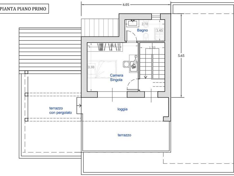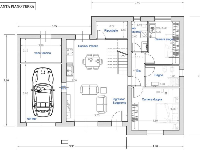 La villetta è disposta per lo più su un unico piano ed è composta da ampio soggiorno open space con cucina a vista ma al tempo stesso può essere realizzata una cucina abitabile, bagno, ripostiglio, due camere matrimoniali oltre lavanderia - vano tecnico. Al piano primo troviamo camera, bagno e terrazzo.