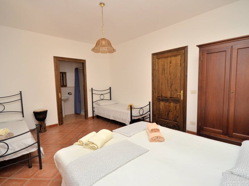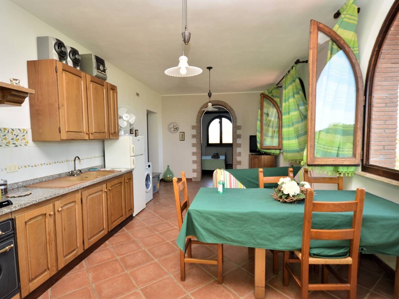 Il casale principale, circa 450 mq, si sviluppa su 3 piani: al piano terra lappartamento dei proprietari composto da 6 vani più il bagno. Lappartamento si estende in parte anche al piano primo, raggiungibile attraverso una scala interna in pietra, dove sono presenti due camere da letto ed un secondo bagno.