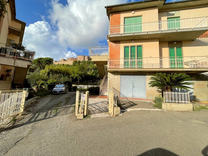 Appartamento in condominio di circa 120 mq a pochi minuti da Porta AllArco a Volterra, raggiungibile a piedi attraverso comode scale nel giardino condominiale. Lappartamento si trova al piano primo ed è composto da due camere, due bagni, salotto grande con balcone molto luminoso, sala pranzo e cucinotto. Dallinterno dellappartamento con delle piccole scale si possono raggiungere i fondi sottostanti dove trovano spazio due garage e un magazzino. La proprietà include anche una parte privata ad uso esclusivo del giardino condominiale. Gli interni sono datati ma conservano le caratteristiche di valore e sono in buone condizioni manutentive.