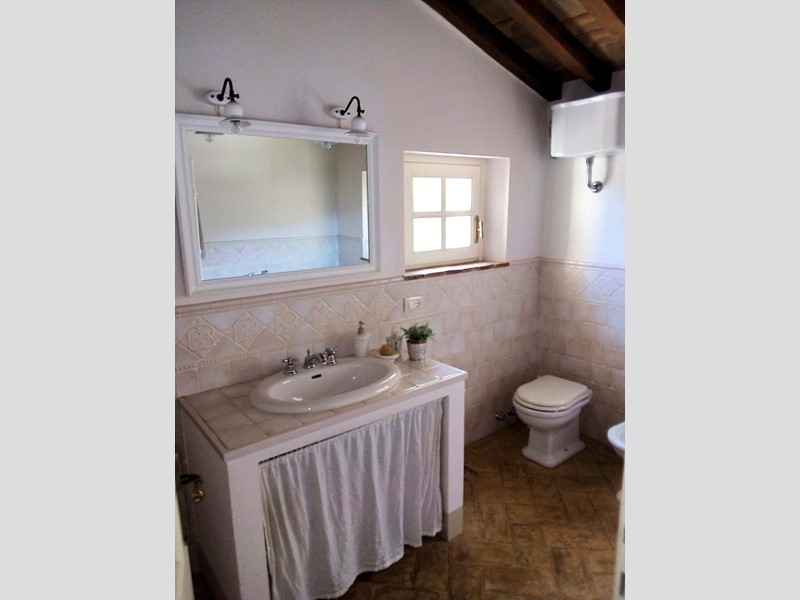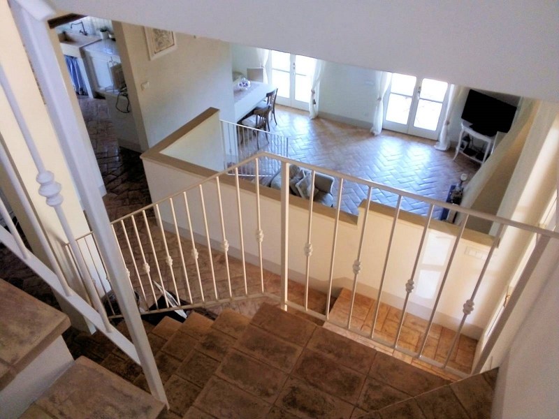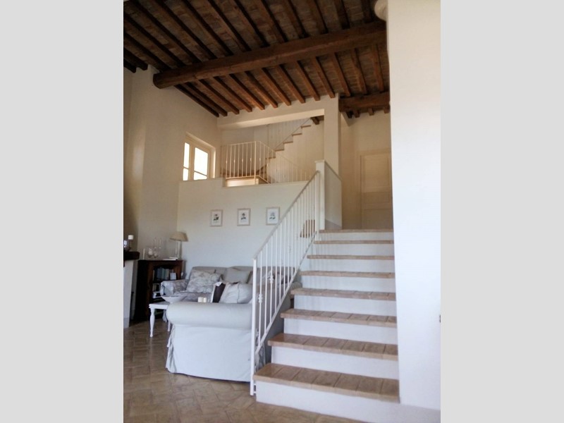 Labitazione è disposta su tre livelli sfalzati ed è composta da tre camere, cabina armadi, due bagni, sala da pranzo di grandi dimensioni, cucina abitabile, porticato, cucina con affaccio sul giardino, grande garage di circa 77 mq con laccesso interno alla villa, giardino terrazzato di circa 1.100 mq.La casa ha un gradevole stile architettonico rustico/country, materiali utilizzati di alta qualità, cotto umbro, mezzane al soffitto con travi e travicelli in castagno, impianto termico a gas, pannello solare per la produzione dellacqua calda sanitaria.