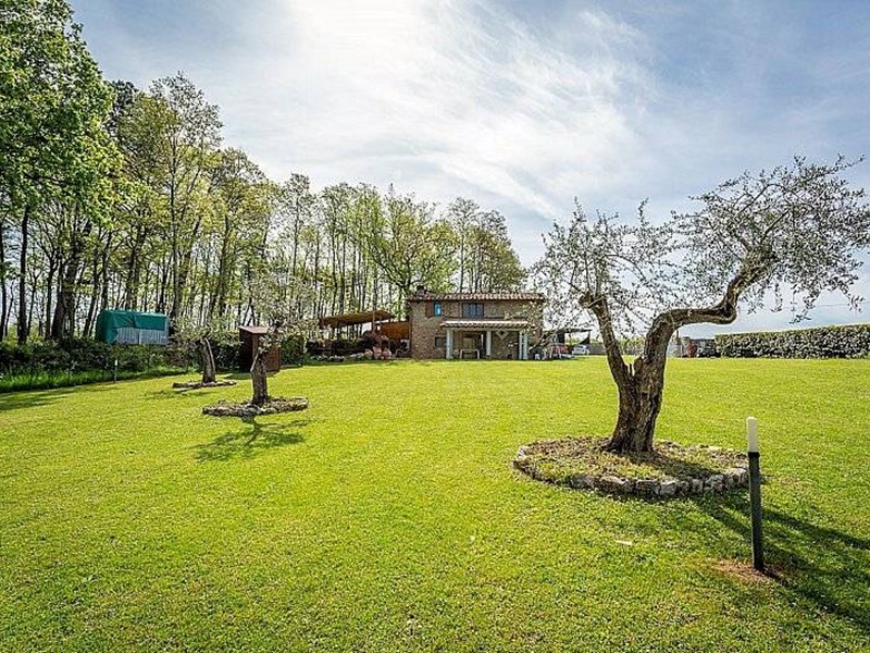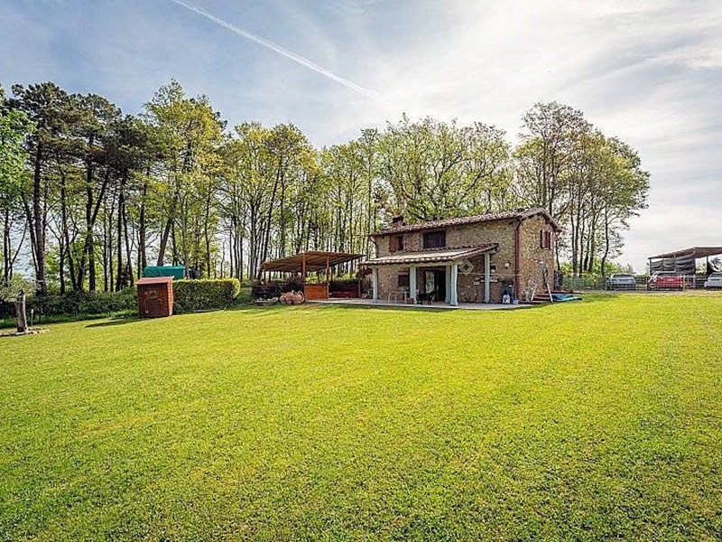 Nella vendita sono compresi 2 ha di terreno, completamente recintato con cancello automatico di accesso, in parte destinato a giardino con qualche albero da frutto e in parte a bosco ed è completamente pianeggiante e di facile manutenzione.
