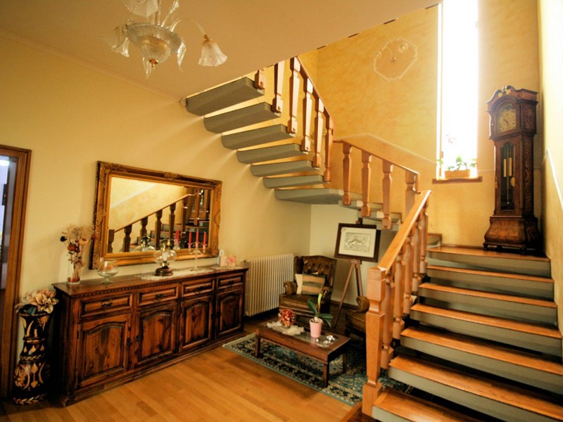 La villa è disposta su due livelli più la soffitta praticabile, al piano terra è composta da cucina con camino, taverna/soggiorno, ingresso di dimensioni generose con una suggestiva scala in legno che porta al piano primo dove trovano spazio un ampio soggiorno con camino con laccesso ad un grande balcone che costeggia il lato più lungo della villa, cucina abitabile, quattro camere, studio, due bagni e ripostiglio.