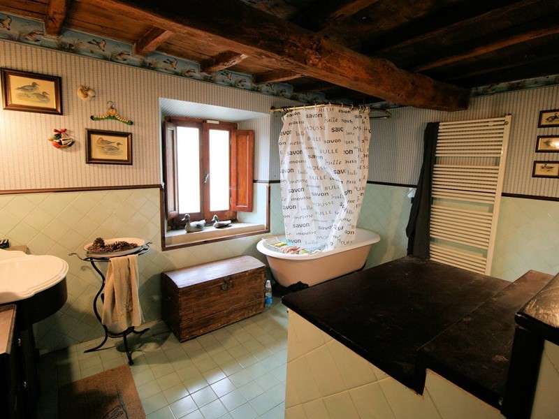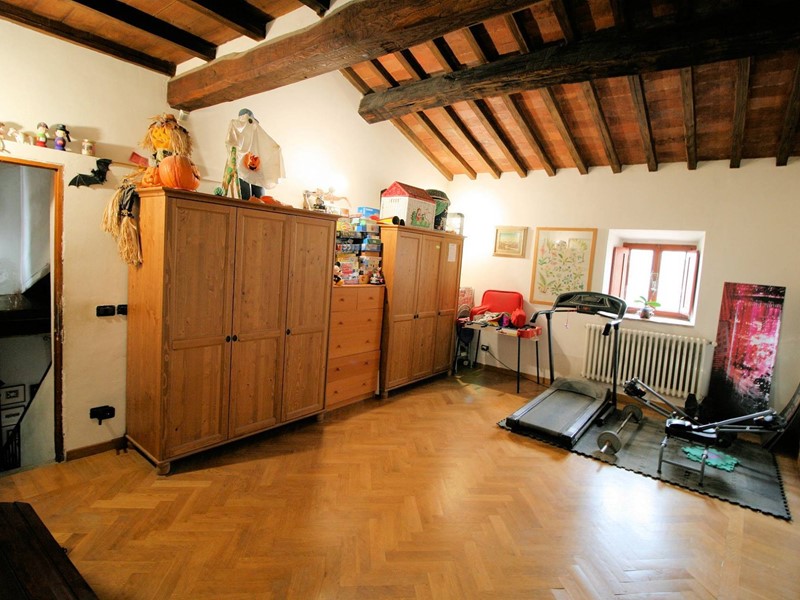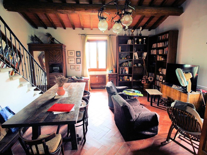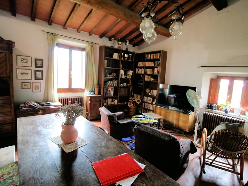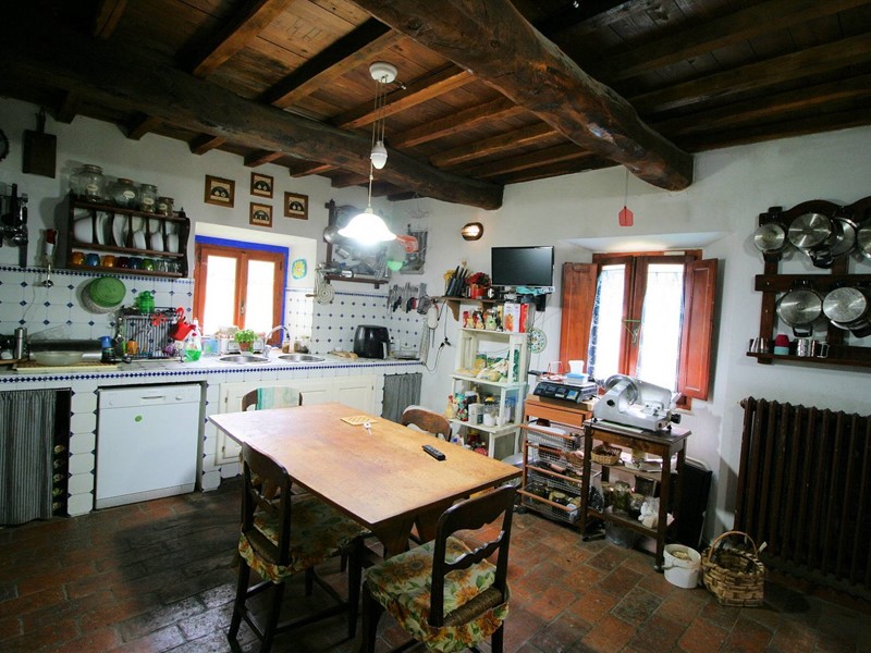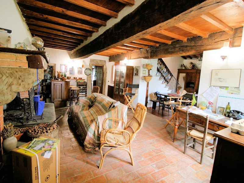 I fabbricati sono circondati da circa 8,4 ettari di terreno di cui 1,3 a uliveto con 120 piante più 1 ad uliveto dismesso, 1 a noceto, 5.000 mq adibiti a frutteto, 2.500mq recintati per ovini, 1,4 tartufaia mentre i restanti terreni sono a pascolo e bosco ceduo. La casa colonica principale è di circa 240 mq e dispone di ampio salone di ingresso con angolo bar e un bellissimo camino, due soggiorni, cucina, tre camere matrimoniali, tre bagni finestrati, due soppalchi e un ripostiglio. Lappartamento attiguo al fienile è circa 65 mq ed è attualmente in locazione con contratto transitorio annuale.Si compone di soggiorno, camera, bagno e ripostiglio.