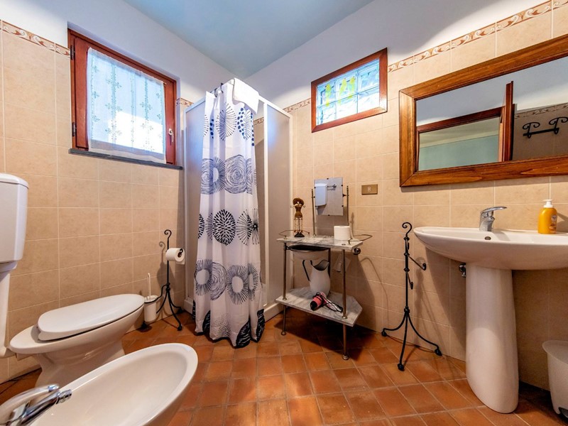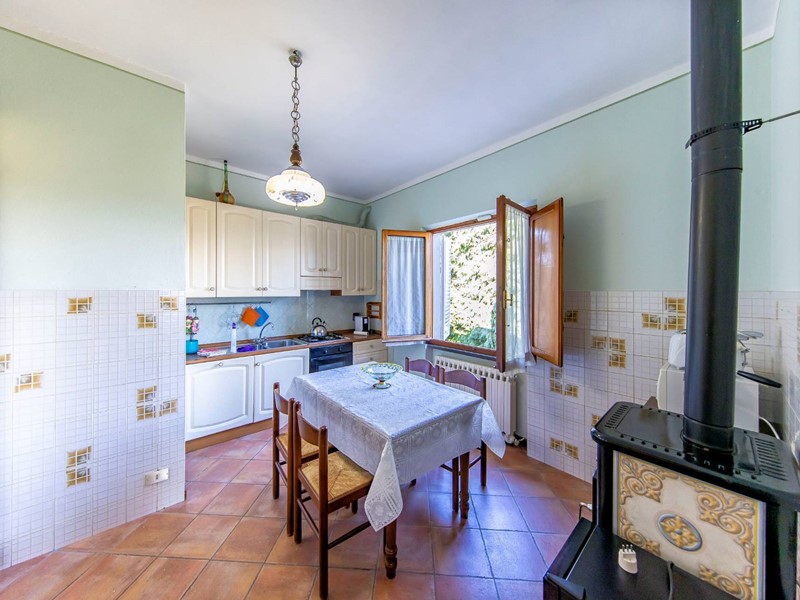 Bellissima villa immersa nel verde della prima svizzera pesciatina, a circa quindici minuti di auto da tutti i servizi, oggetto di recente ed accurata completa ristrutturazione, attualmente suddivisa in due unità abitative completamente indipendenti, una al piano terra e una al piano primo, corredata da grande giardino della superficie di circa mq. 3.200 sul quale insiste una stupenda piscina panoramica incassata nel terreno, con ampia area attrezzata. Al piano terra troviamo l'unità abitativa con accesso indipendente doppio, composta da ingresso, soggiorno con angolo cottura, disimpegno, tre camere, bagno finestrato con doccia, altro bagno finestrato con doccia, servizio igienico con w.c. e lavabo, con predisposizione per doccia. Al piano primo troviamo l'altra unità abitativa, con accesso indipendente da scala esterna e terrazzo, e con altro accesso da piccola loggia, composta da ingresso, ampio e luminoso soggiorno, cucina abitabile, ripostiglio, disimpegno notte, tre grandi camere, due bagni entrambi finestrati con doccia. Il tutto corredato da fabbricato distaccato ad uso annesso agricolo, dislocato su un unico piano fuori terra, attualmente costituito da due ampi vani e un bagno finestrato con doccia, fabbricato distaccato ad uso magazzino, costituito da un ampio vano al piano terra ed un ampio vano al piano primo, entrambi i piani con ingresso indipendente, oltre soffitta e volumi tecnici. L'intera proprietà gode di splendidi affacci sulle colline e sulla vallata, è completamente esposta al sole, è facilmente raggiungibile con qualsiasi mezzo ed il terreno è completamente recintato. La proprietà è attualmente utilizzata come struttura ricettiva, ma è ideale anche come suggestiva villa privata. Elementi in legno rustico, mattoncini e pietra faccia-vista, infissi in legno con doppi vetri, riscaldamento autonomo con radiatori in ghisa, caldaia alimentata a GPL. Il fabbricato principale è attualmente diviso in due unità, ma è già predisposto per realizzarne quattro, due al piano terra e due al piano primo, avendo già la predisposizione per la divisione degli impianti e gli attacchi e scarichi per le cucine. Nel caso in cui si volesse realizzare una villa singola, potrebbero essere collegati i due piani con scala interna da realizzare, volendo ove già presente in passato. Il prezzo include terreni distaccati ad uso uliveto, bosco, castagneto da frutto, per una superficie di circa mq. 120.000. Il tetto è in travetti e pignatte, con sovrastante soletta di calcestruzzo di cemento, con guaina impermeabilizzante e soprastante manto di copertura in cotto toscano, la facciata è stata completamente imbiancata al nuovo da pochi mesi. Il terreno circostante è inserito in zona "F4", con potenzialità di ampliamento residenziali, commerciali e ricettive.