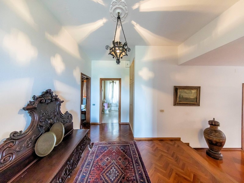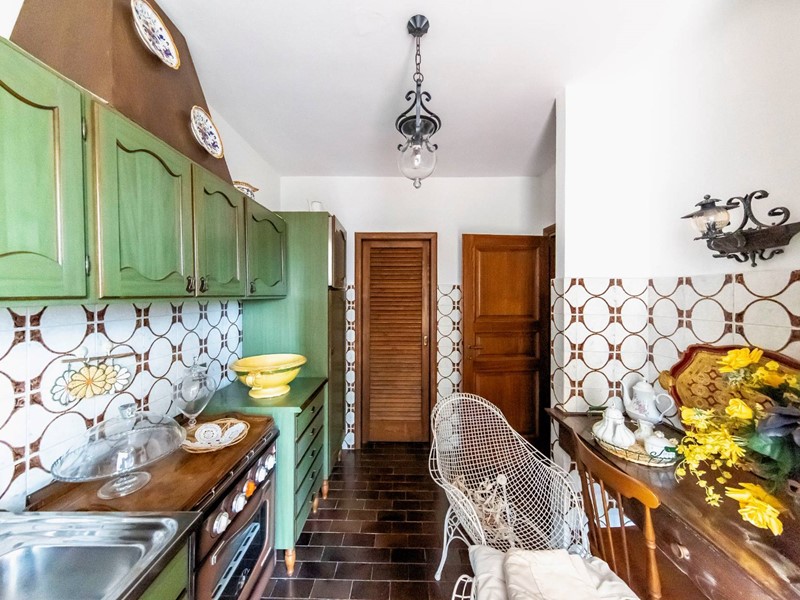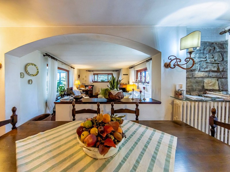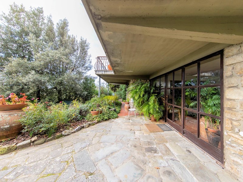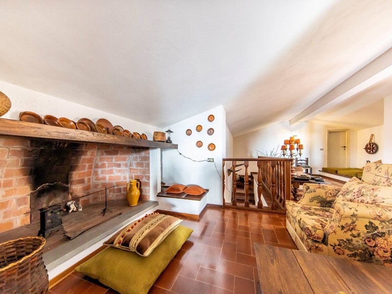 In bellissima posizione collinare, con un panorama a 360° su tutta la vallata, villa di importanti dimensioni completamente ristrutturata e recintata, suddivisa in : piano terra, dove troviamo il porticato da cui si accede alla taverna con camino, alla cucina abitabile, ad una camera grande ed una cameretta, oltre al bagno di servizio; piano rialzato, composto da grande e suggestivo soggiorno doppio con grande camino, altro grande soggiorno, due camere matrimoniali, camera doppia, studio , due bagni finestrati di cui uno con vasca e uno con doccia; piano primo, composto da mansarda adibita completamente a zona giorno, con accesso a grande terrazza in affaccio a sud ed ulteriore camino. L'immobile è interamente circondato da terreno agricolo privato della superficie di mq. 7.000 circa, mantenuto in parte a giardino ed in parte ad oliveto, e munito di cisterna per raccolta di acqua piovana, con due pozzetti depurativi. Termo-singolo a gasolio, pavimenti in cotto nella zona giorno e parquet in tutta la zona notte e in una parte della zona giorno. Il tutto corredato inoltre da grandi terrazze panoramiche sui lati est, sud ed ovest dell'intero piano rialzato. Questa bellissima proprietà è inserita in una cornice suggestiva, in posizione soleggiata e panoramica, una proprietà unica per grandi spazi e grande giardino pianeggiante.