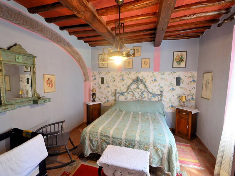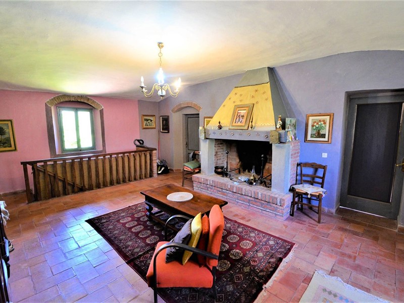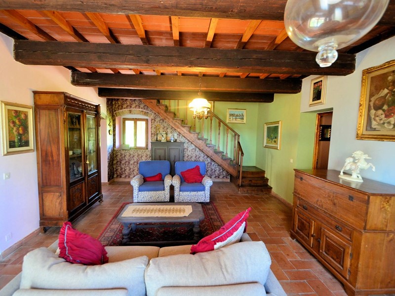 Al primo piano, a cui si puo accedere sia con l'elegante scala in legno interna che con la caratteristica scala in pietra esterna, si trovano 2 camere da letto, un salone con camino, sala da pranzo con vista incantevole sulle colline circostanti, piccola cucina e bagno.