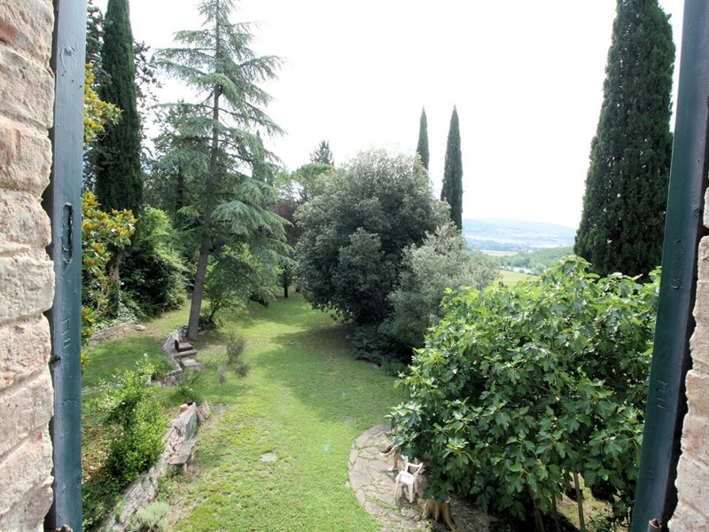 Il giardino è ampio e ben mantenuto annovera molti alberi da frutto, un barbecue e una bella vista panoramica sulla campagna circostante.L'appartamento al piano terra dispone di un proprio giardino attrezzato con barbecue, questo facilita lutilizzo indipendente delle due unità che volendo possono essere affittate ai turisti nel periodo estivo oppure agli studenti che frequentano luniversità di Perugia.Il giardino più il terreno adiacente sono circa 10.000 mq dove è possibile realizzare una piscina di grandi dimensioni e per gli amanti dei cavalli si possono realizzare dei box e un ampio rettangolo.