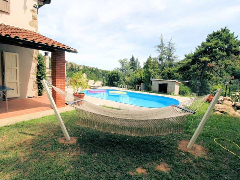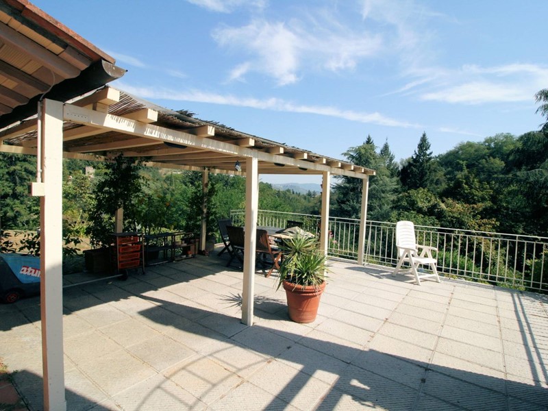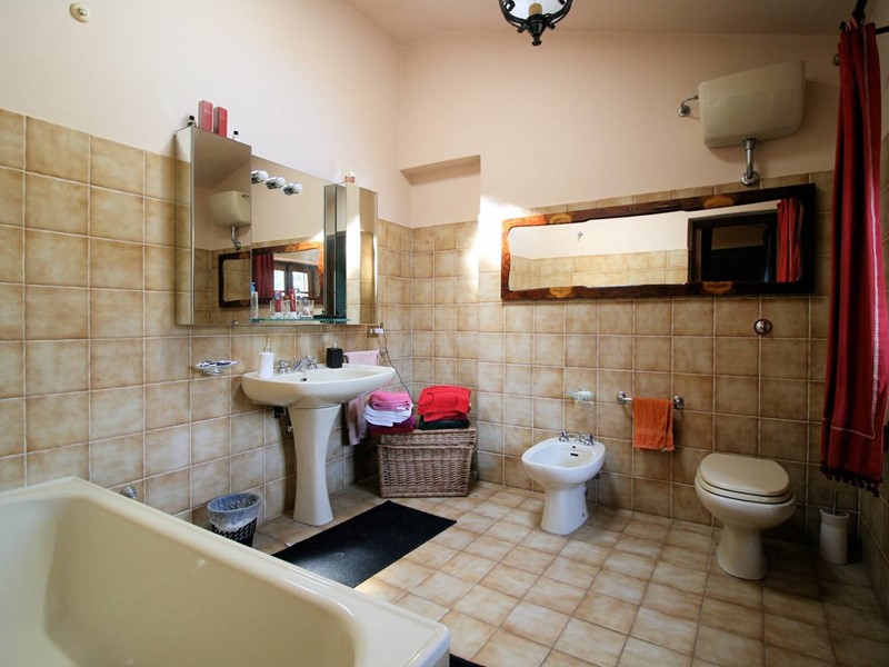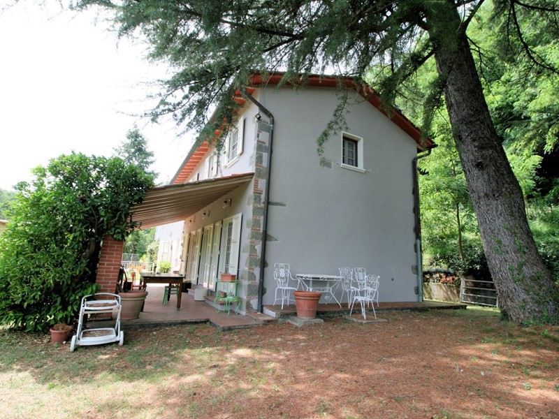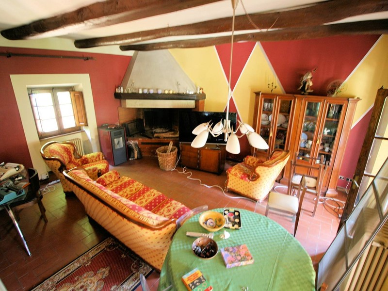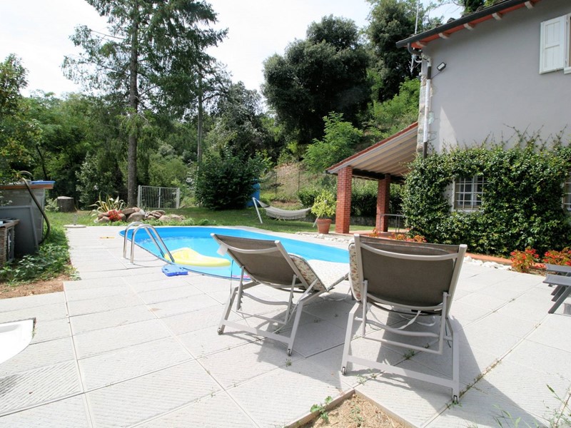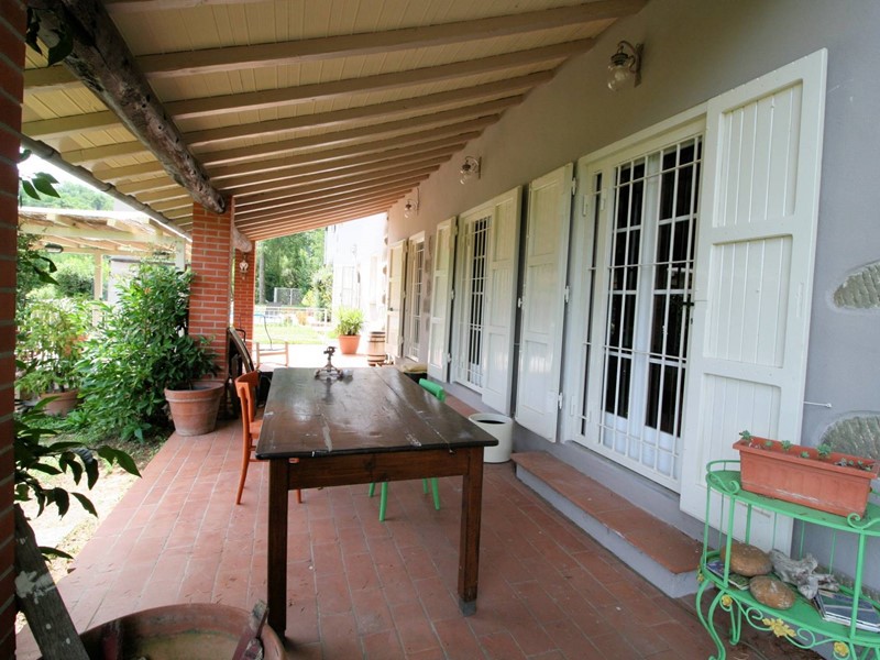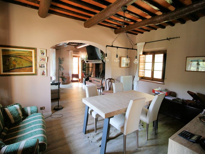 Villa indipendente di grandi dimensioni quasi 400 mq sita in una zona collinare panoramica fra le più belle del comune di Buggiano allinterno di un polmone verde di circa 40.000 mq dove si può godere unottima privacy.La proprietà è appartata ma non isolata ed è raggiungibile comodamente attraverso una diramazione della via panoramica che collega il paese di Massa e Cozzile a quello di Colle di Buggiano.Il fabbricato ha i toni rustici tipici della Toscana quali i solai in travi, travicelli in legno e mezzane, alcune pareti in pietra a faccia vista, camino di dimensioni generose come nella tradizione rurale di un tempo.La villa è composta da due unità immobiliari di diversa superficie completamente indipendenti luna dallaltra ed è disposta su due livelli fuori terra più una parte interrata dedicata a locali di sgombero e cantine oltre una parte seminterrata dove cè il garage oggi utilizzato come taverna.Lunità padronale è composta al piano terra da ingresso/vano scale, ampio soggiorno con camino ed accesso diretto ad un bel portico di circa 18 mq proprio di fronte alla piscina interrata, cucina, bagno;