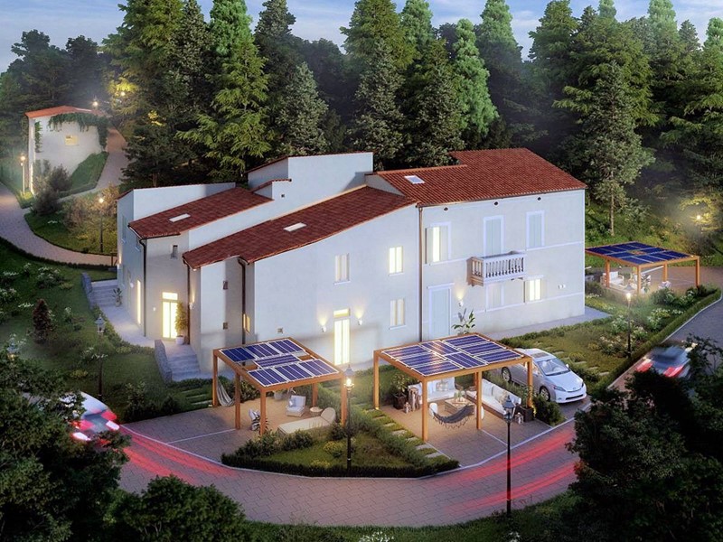 Il terratetto fa parte di una nuova realizzazione che comprende solo tre abitazioni della stessa tipologia a cui il progettista e il costruttore hanno dato la massima attenzione per il risparmio energetico, mantenendo comunque le caratteristiche rustiche toscane mediante l'utilizzo di materiali di pregio, con possibilità di scelta delle rifiniture.Verrà installato per ogni unità abitativa limpianto fotovoltaico.