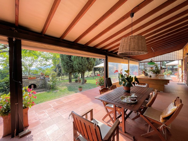 L'immobile è stato ristrutturato, e all'esterno c'è una meravigliosa veranda che circonda tutta la proprietà e si affaccia sul giardino antistante e sul boschetto.