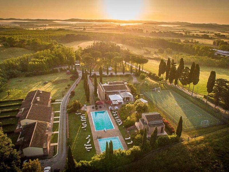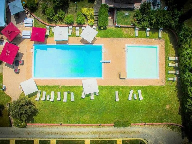 Questo bellissimo complesso turistico ricettivo è adagiato sulle colline pisane, cuore della Toscana. Punto di partenza ideale per raggiungere con facilità le più importanti città d'arte toscane come Firenze, Pisa, Volterra, Siena, Lucca o godersi giornate di relax nelle località termali come Casciana Terme.Questi luoghi sono ricchi di tesori nascosti da scoprire, che racchiudono l'essenza della Toscana. A pochi passi da prestigiose aziende vinicole, passeggiate, e percorsi in bicicletta ideali per rilassarsi e vivere un meraviglioso soggiorno nella nostra terra. La consistenza dell'attuale complesso turistico tipicamente in stile toscano ammonta a mc. 3.000 a seguito dell'avvenuta messa a regime del primo lotto, con circa 27.000.00 mq di terreno intorno a tutta la proprietà.Attualmente la struttura è composta da 9 comodi appartamenti con caratteristiche delle case coloniche toscane, di 2/6 posti letto, con ingressi indipendenti, giardinetto e terrazza esterna, completamente arredati in stile arte povera toscana, e dotati di ogni comfort e connessione wi-fi. In prossimità troviamo 4 accoglienti chalet indipendenti (tipologia bungalow) da 5 posti letto, ciascuno con parcheggio esclusivo, veranda esterna e dotati di ogni comfort, due piscine una per gli adulti ed una per i bambini, reception, internet point, campo da calcetto-tennis, pineta attrezzata e laghetto.La proprietà ha presentato un progetto con planovolumetrico approvato e convenzionato che prevede la possibilità di realizzare ulteriori 3000 mc per la costruzione di casa padronale con sala convegni, sala espositiva dei prodotti locali, reception, oltre a magazzini e accessori, nonché ulteriori 8/10 unità abitative, ampliamenti spazi del ristorante ecc. la capacità ricettiva, attuale è di 62 posti letto, potrà raggiungere circa 100 posti letto, con la costruzione del secondo lotto in base anche alla crescente domanda del mercato.Il comparto ristorazione è aperto anche alla clientela esterna alla struttura ed è cosi composto, area pizzeria con forno a legna e griglieria, area bar, 2 sale interne per un totale di circa 100 posti, ampie sale all'esterno con strutture leggere atte a soddisfare cerimonie ed eventi per centinaia di posti mediante l'utilizzo di spazi a bordo piscina e dello stesso parco.Sono sempre più i clienti fidelizzati della struttura che di anno in anno la scelgono per trascorrere le loro vacanze.Sono forti anche i rapporti con poche ma importanti agenzie di in coming con sede in Olanda, Belgio e Francia, le quali garantiscono circa un 40% delle prenotazioni(circa 9.000 presenze annue). La clientela tipo della struttura, che nel corso degli anni si è confermata è la famiglia con bambini piccoli con età compresa tra 2 e 18 anni.