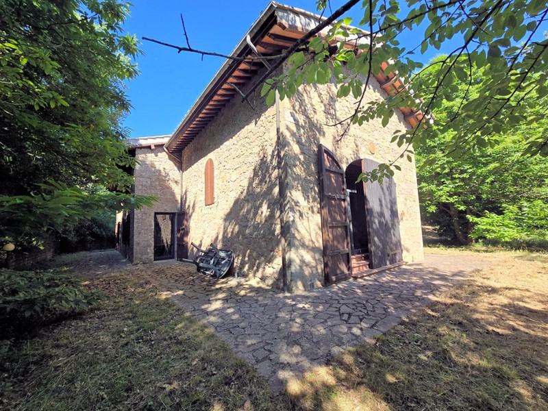 La casa è circondata da circa 5.800 mq in piccola parte da giardino e per il resto da bosco ceduo.