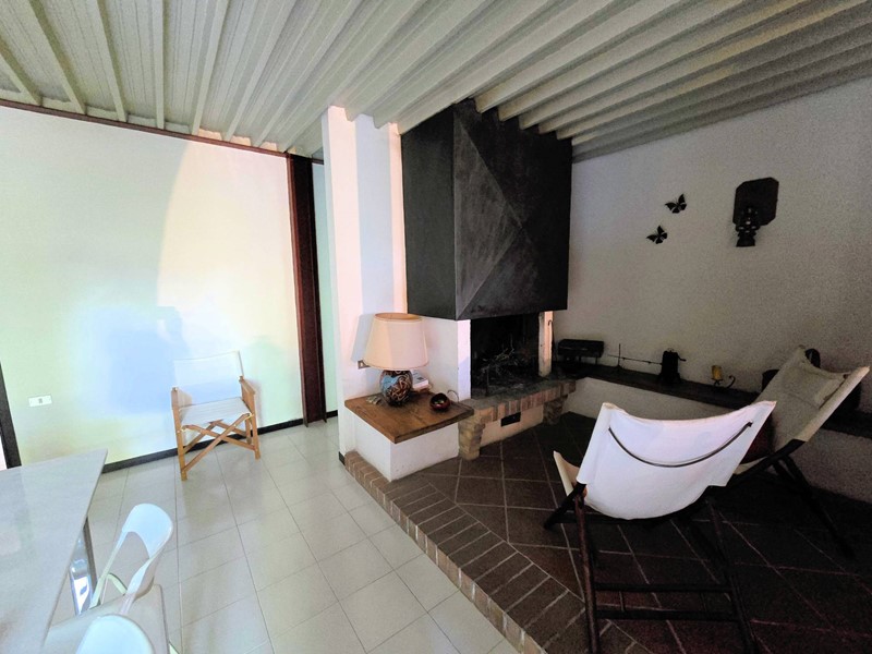 Labitazione è disposta su due livelli fuori terra al piano terra troviamo un ampio ingresso con affaccio sullo scenografico soggiorno molto luminoso con altezza fino al tetto con travatura lignea faccia vista, sala da pranzo con accesso verso il giardino con attigua zona relax intorno al caminetto, cucina ben arredata con ripostiglio/dispensa, camera, bagno e ripostiglio;