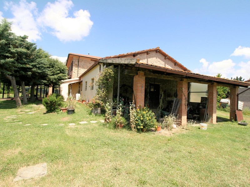 2. Porticato frontale di 42 mq circa in legno e cotto, colonne rustiche, pavimentazione in cotto.