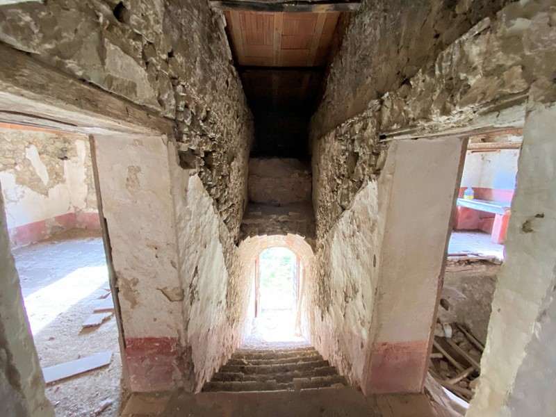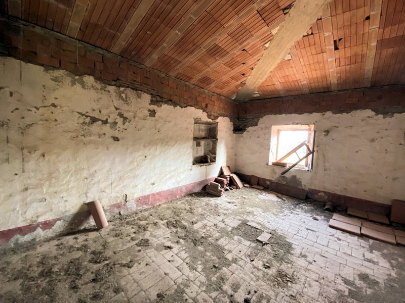 al piano primo, con accesso con scala interna, grande cucina con camino, sala pranzo, 3 camere matrimoniali, bagno.Il fabbricato è circondato da un appezzamento di terreno in corpo unico di circa 30 ettari di cui 5 seminativi, 1 di uliveto in produzione il resto pascolo e bosco ceduo.L accesso alla proprietà avviene mediante strada bianca di circa 1500 metri da ristrutturare, attualmente è percorribile solo con fuoristrada. Il visitatore si immerge completamente nel più classico dei paesaggi Toscani dove la campagna è ancora incontaminata con una vista panoramica mozzafiato.La dimora perfetta per chi ama la campagna e desidera vivere a contatto diretto con la natura, si può sviluppare una azienda agricola biologica, il clima gradevole nei mesi estivi,la vicinanza alla costa tirrenica,il pregio del luogo e la presenza di cittadine turisticamente importanti come Volterra, San Gimignano, Siena determinano la naturale vocazione turistica del territorio, dista 2 km dallantico borgo zona altamente vocata per cicloturismo e coltivazioni biologiche .