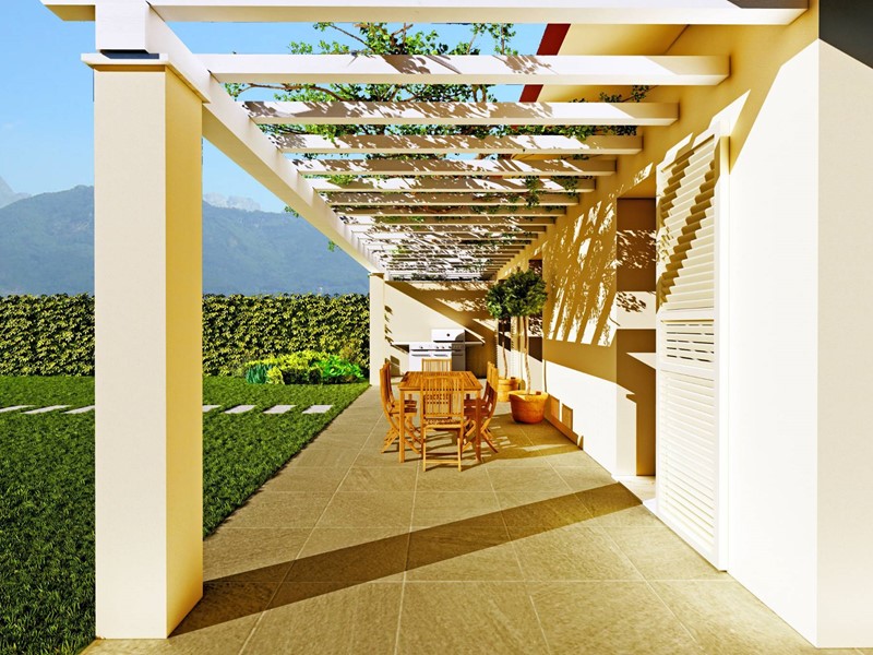 Porzione terratetto di Villa bifamiliare di nuova costruzione di circa 153 mq, in località Marina di Massa sita in una zona che collega il tessuto urbano del centro di Marina di Massa ed una zona di servizi da dove si raggiunge agevolmente il centro di Massa. EÌ ben servita dai trasporti pubblici e consente non solo di fruire dei servizi di vicinato,