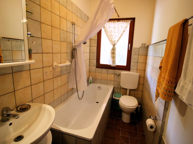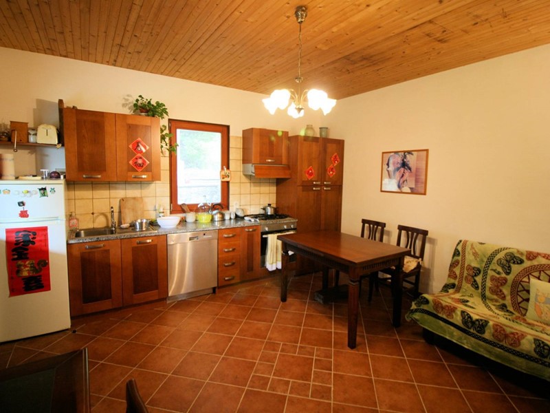 Labitazione di circa 90 mq è disposta su un unico livello ed è stata costruita in bioedilizia mediante struttura in legno, allinterno è composta da ampia zona giorno con cucina a vista, due camere, bagno.Con accesso solo dallesterno troviamo una camera con bagno e piccolo angolo cottura per gli ospiti o parenti e un vano tecnico/lavanderia con scala per laccesso alla soffitta.