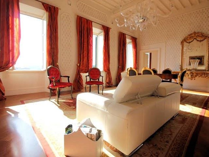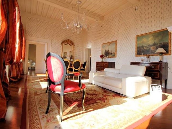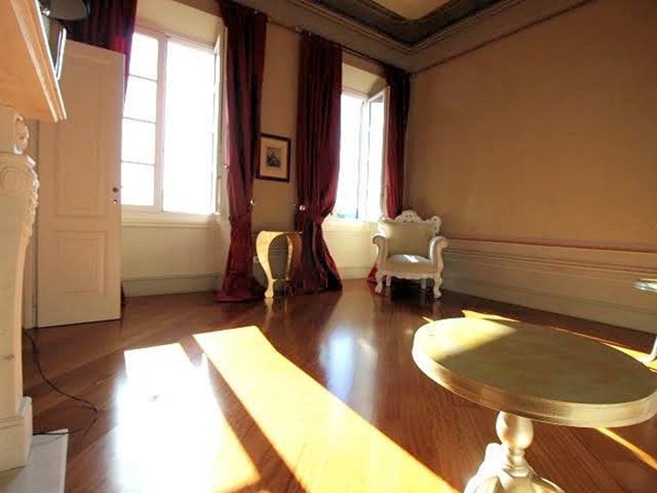 Inserito in prestigioso e suggestivo palazzo storico costruito nel 1700, nel cuore dei servizi, splendido appartamento completamente recentemente ristrutturato, sito al piano secondo (ultimo), servito da ascensore, esposto principalmente sul lato sud, ma libero anche ad est, composto da ampio corridoio di ingresso affrescato, grande luminoso e panoramicissimo soggiorno doppio con altezza mt. 4,50, con camino in marmo bianco di Carrara, cucina semi-abitabile con forno a legna, camera matrimoniale con camino in marmo bianco di Carrara, altra camera, due bagni entrambi con finestra, molto curati nelle rifiniture ed accessori, e ripostiglio. Riscaldamento a pavimento, alimentato da caldaia a metano, pavimenti in parquet, infissi in legno con doppio vetro, alto grado di rifiniture. L'appartamento è completamente affrescato, ed è dotato di impianto di aspirazione centralizzato. Possibilità di trattare parte dei mobili.