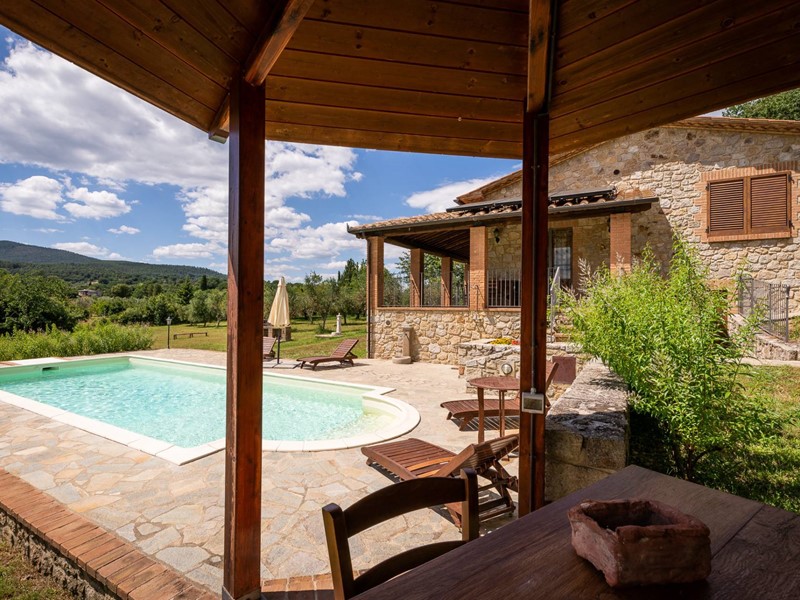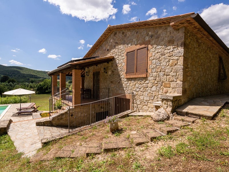 Bel casale in pietra, ristrutturato nel 2010, vicino ad un bosco di sughere, lecci e querce, sorge nei dintorni di Roccastrada (GR).