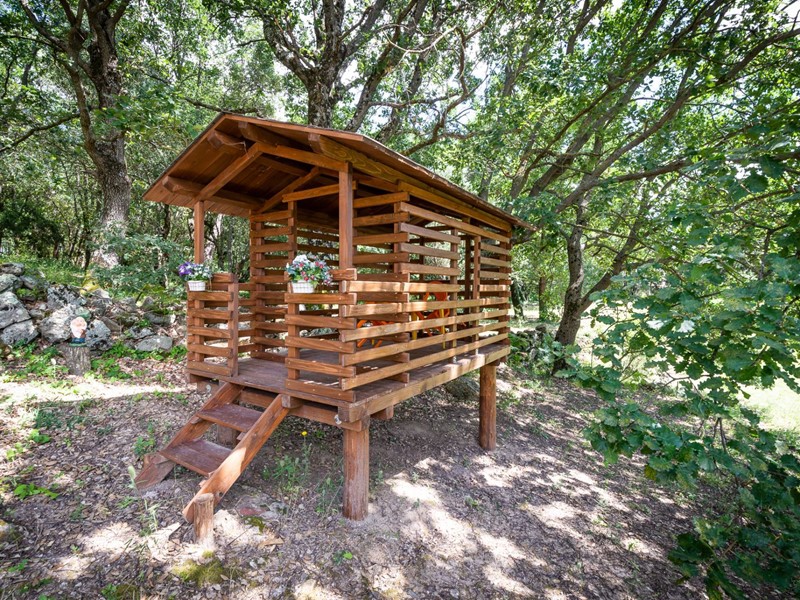 Il casale è circondato da un appezzamento di terreno di circa 3 ettari per la maggior parte occupata dal bosco e per circa 8.000 mq da prato giardino.