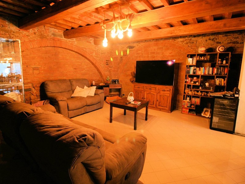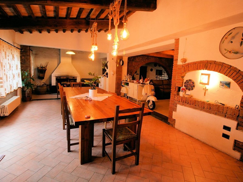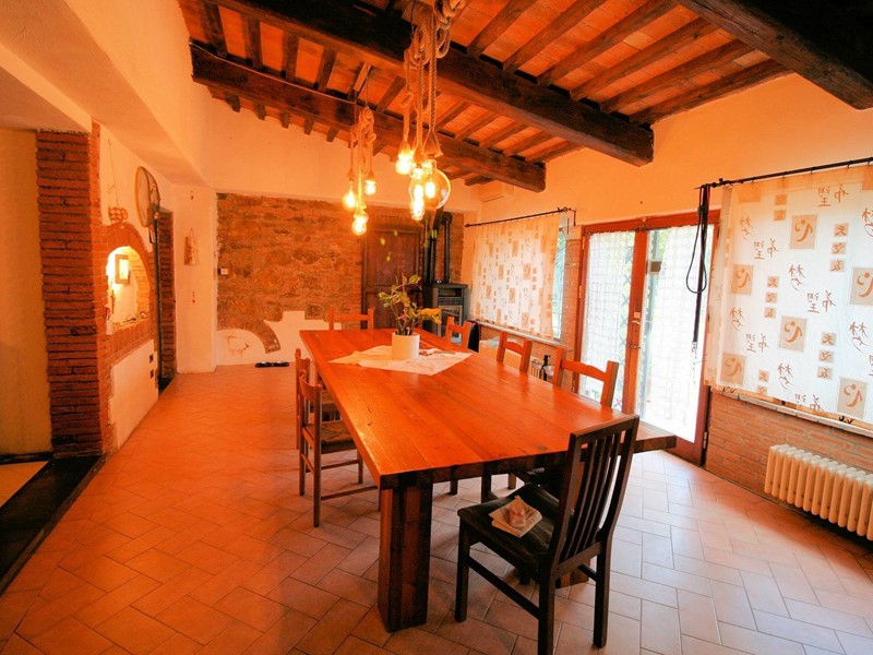 La parte del fabbricato utilizzata ai fini abitativi è disposta su due livelli ed è composta al piano terra da una zona living molto spaziosa con soggiorno, sala da pranzo con camino, cucina di dimensioni generose con piccola dispensa, bagno;
