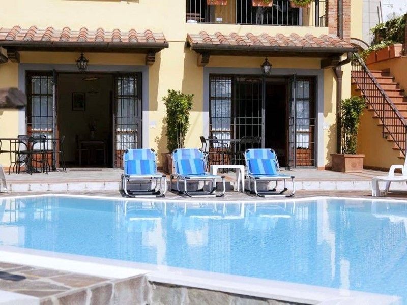 Il fabbricato libero su tre lati è circa 270 mq e ha a disposizione un terreno terrazzato di circa 3.000 mq, di fronte alla struttura cè anche una bella piscina con il solarium.