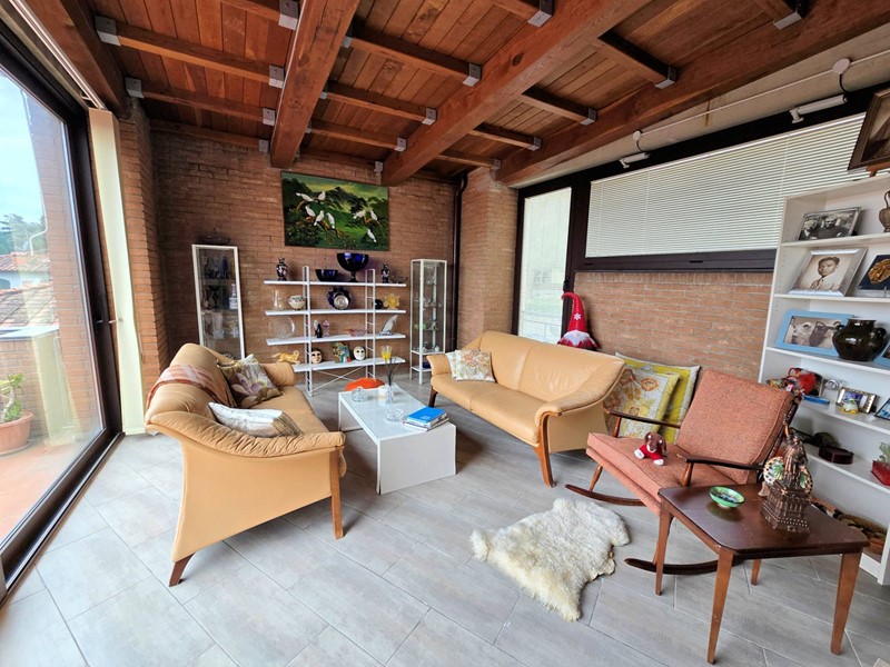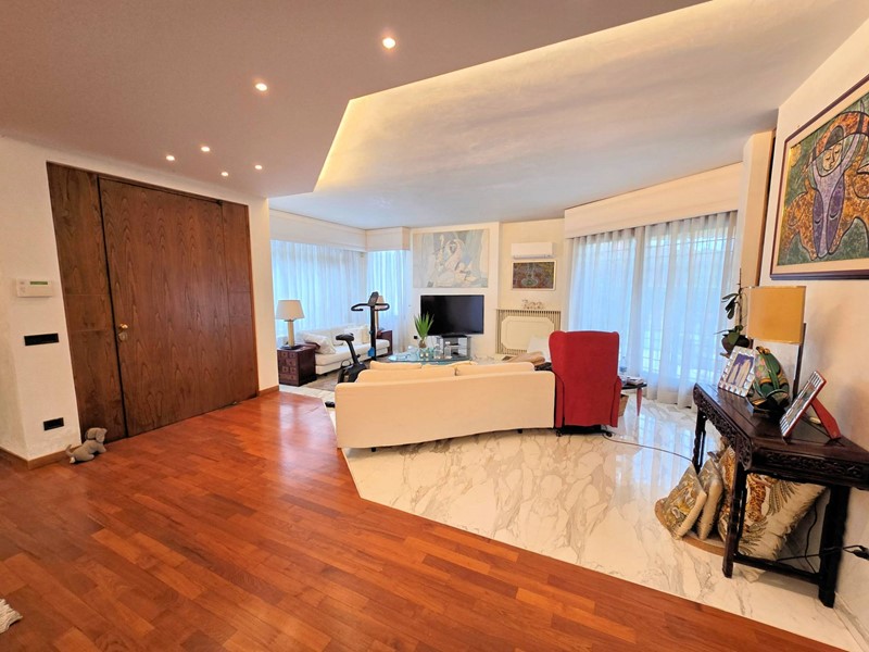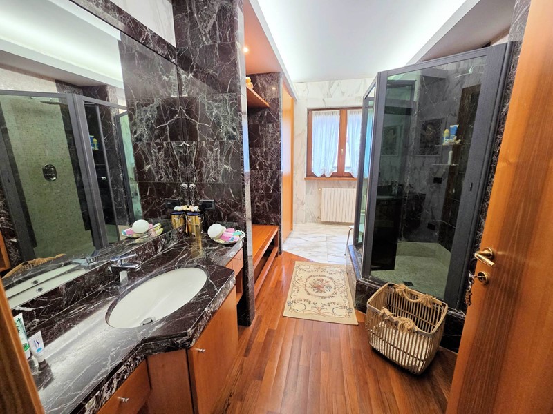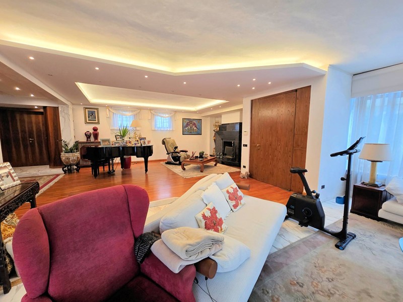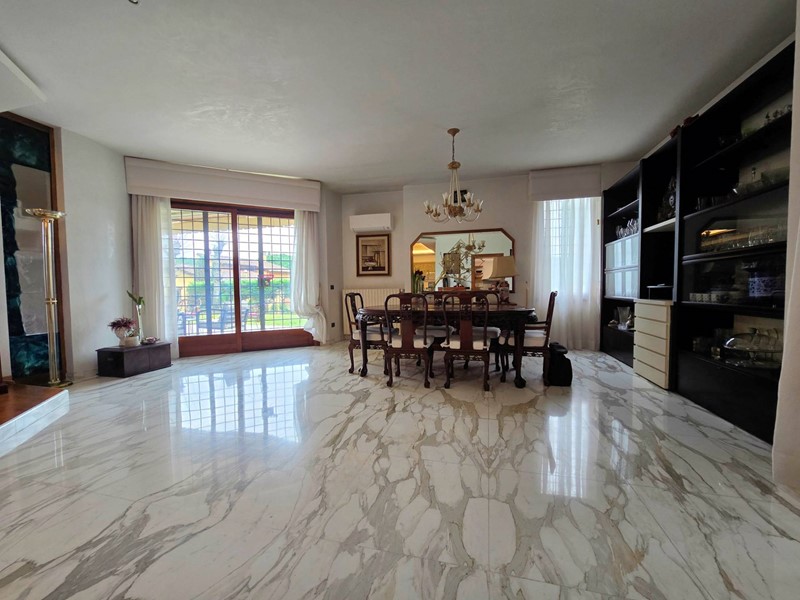 Al piano terra troviamo una stupenda zona living open space molto luminosa a piani sfalsati con dei bellissimi pavimenti in marmo di carrara e parquet, cucina con dispensa/zona lavoro, piccolo servizio, ripostiglio.Dalla zona giorno di questo piano si accede al giardino di circa 450 mq ben curato, pratico e facile da mantenere.Dalla cucina si accede ad un comodo e spazioso pergolato dove è possibile mangiare allaperto.A questo livello abbiamo anche lautorimessa di circa 60 mq a cui si accede direttamente dalla villa;